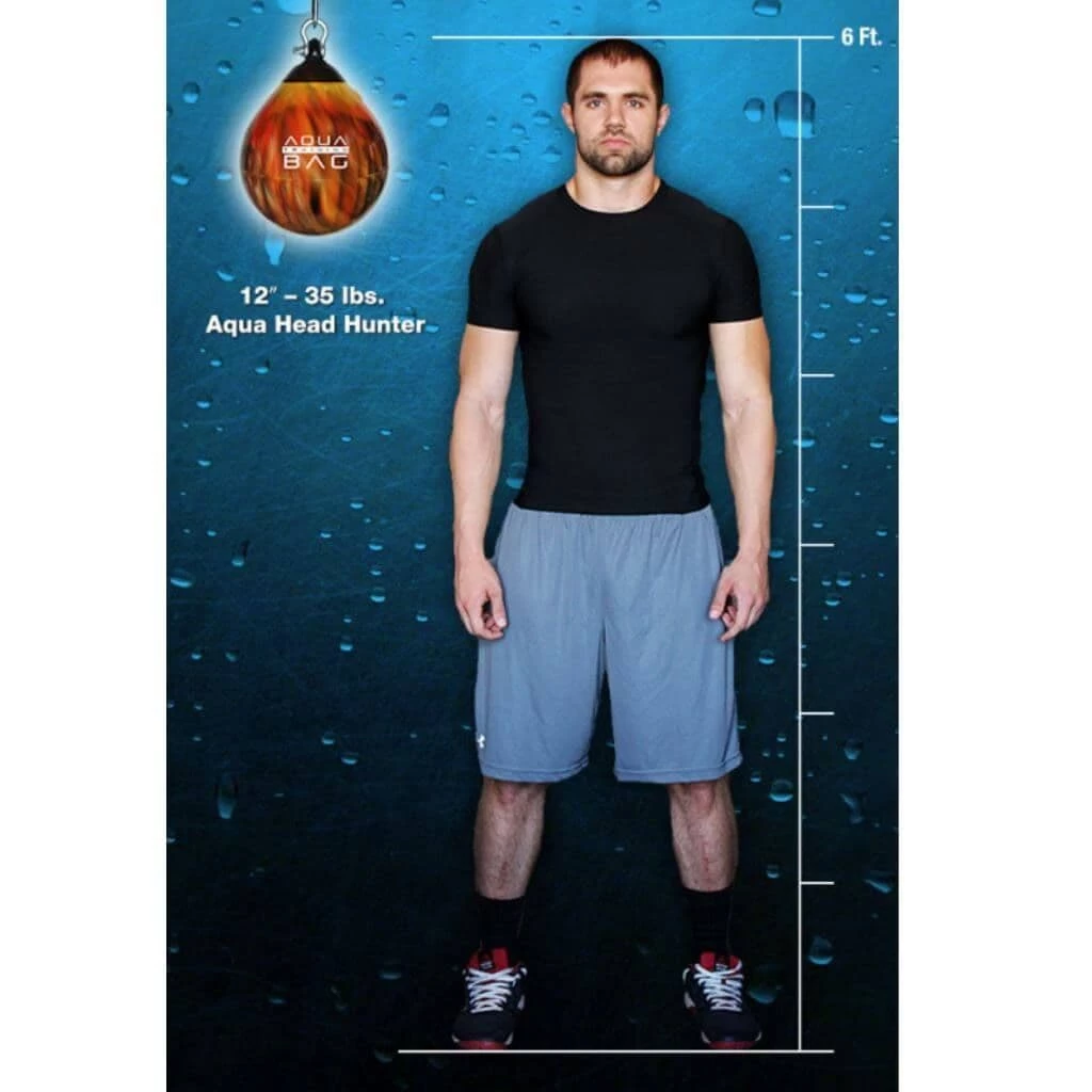 An opponent wonโt just stand there unmoving, unfortunately. An opponent will move. The 12โณ Aqua Head Hunter moves too, to provide offensive and defensive training for fighters. Slip it, hit, time it and smash it! The 12โณ diameter Aqua Punching Bag Hybrid in Blood Redย colour provides just a bit more surface space to work on than the 9โ Head Hunter and is more than twice the weight at 35 pounds when filled.