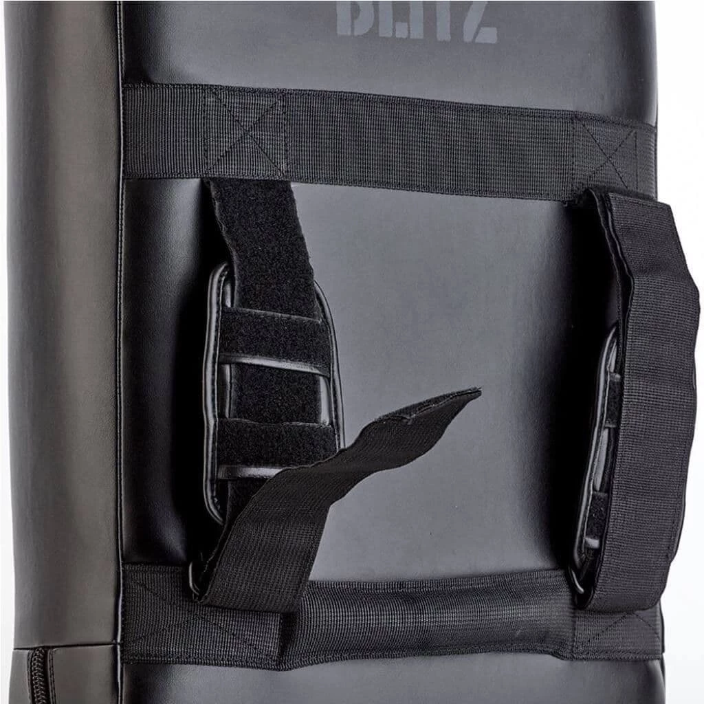 Perfect for conditioning kicks, punches, elbows and knees, this multi-functional strike shield features two adjustable straps and two conveniently placed handles allowing for a variety of Martial Arts techniques and styles of training to be practised. Shield can be held length-ways or on its side, giving a range of training possibilities and allowing the holder to position themselves to demand fast, precise and angled strikes from the fighter. Flat strike surface is also great for general workouts, building speed and stamina. Made from Nama Hide synthetic leather with a high density foam core for maximum shock absorption. Easy to wipe clean before and after use.