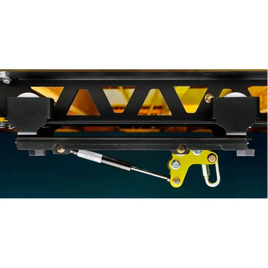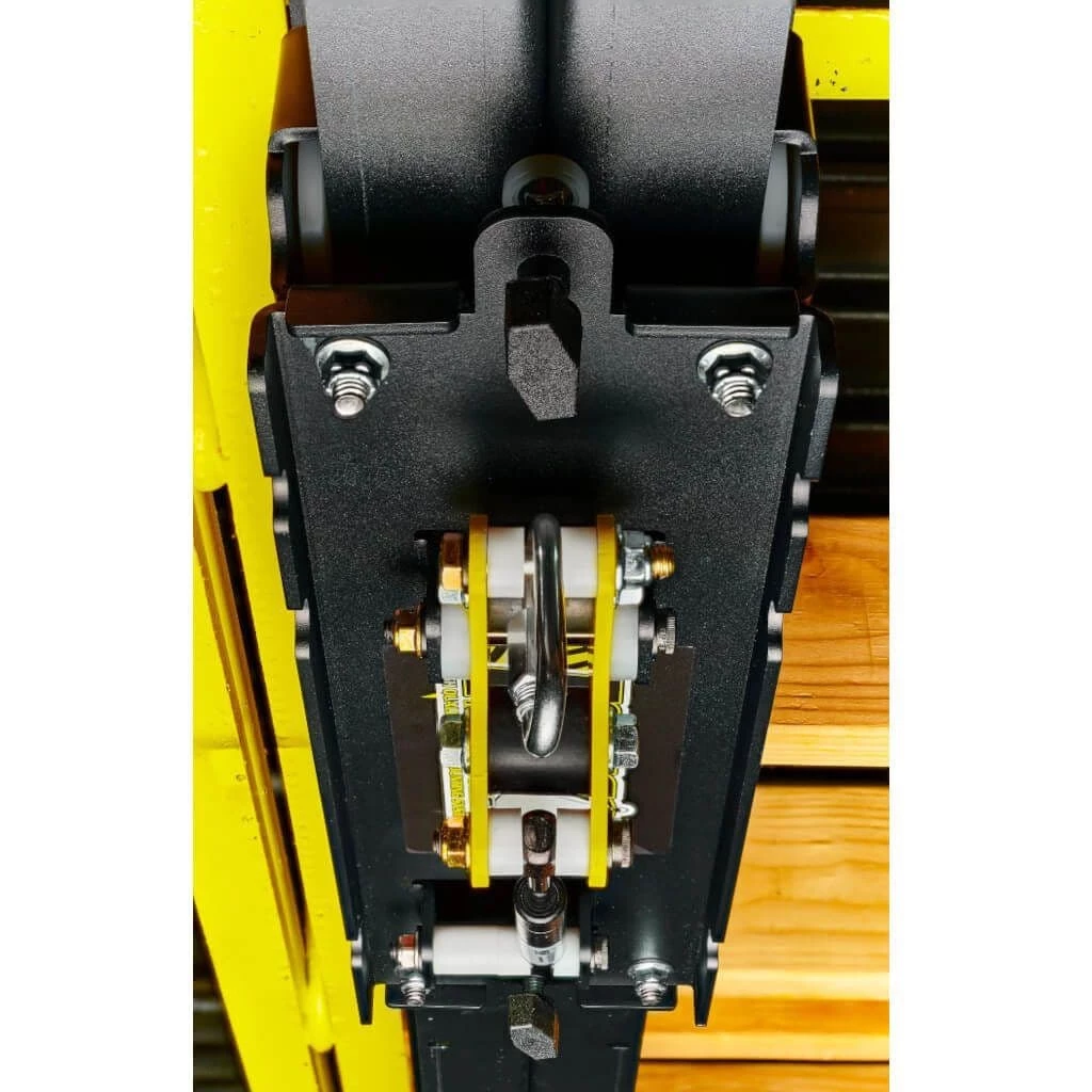 - Rolls smoothly along the track and locks in place with a turn of the handles.