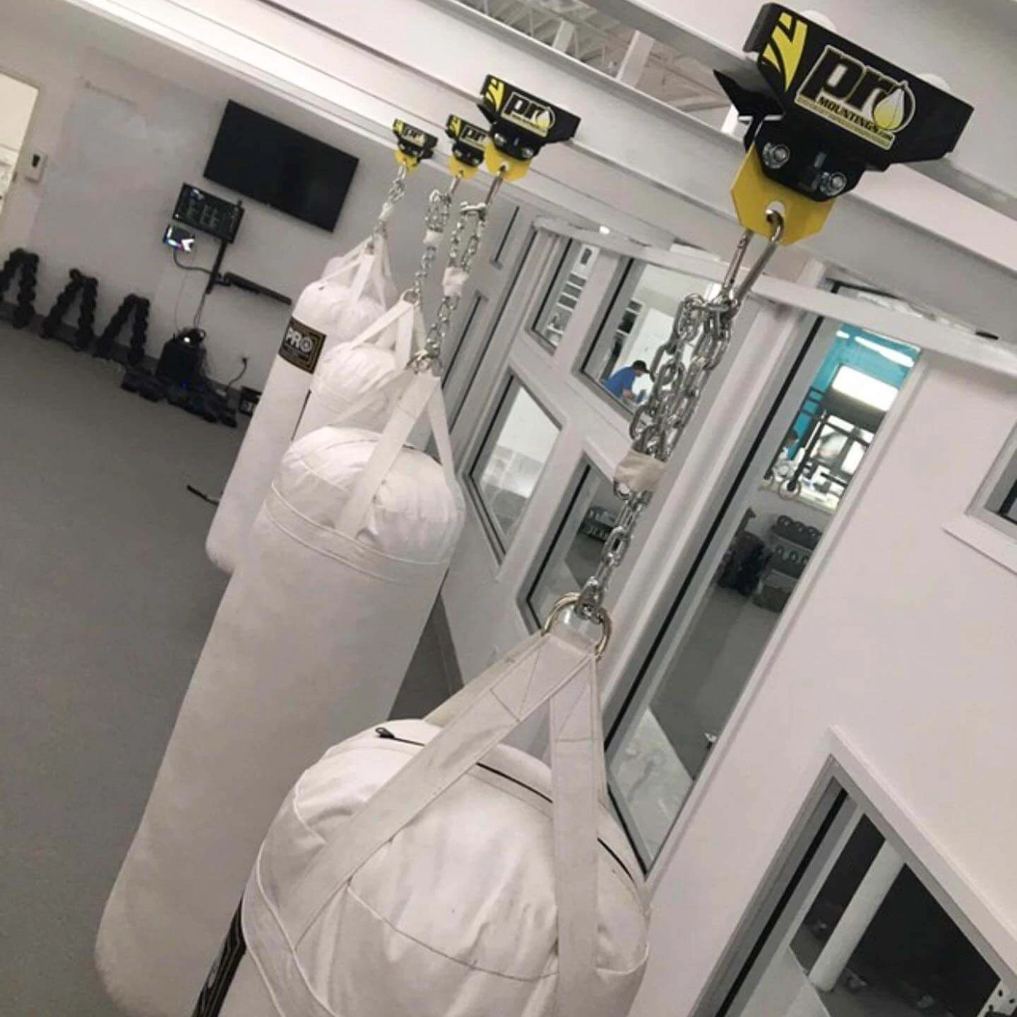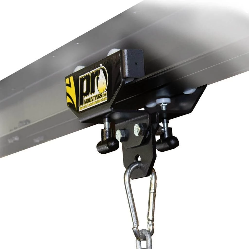 ProMountings I-Beam Roller Mounts are adjustable rolling and/or fixed mounting systems for punching bags that weight up to 260lbs. They roll across the I-Beam as you work out, or you can lock them into position for a static workout and roll them out of the way when you’re done.