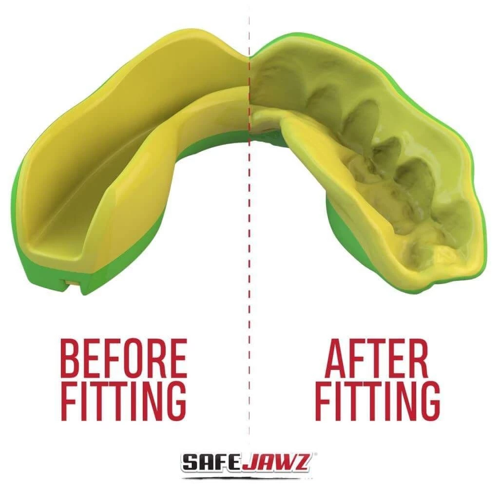 Itโs Fluid Fitโข Technology means that SAFEJAWZยฎ guards feature a super-slim profile and great retentive qualities. The guard will essentially clip onto the teeth & fit comfortably so that breathing, talking and drinking will not be a problem.