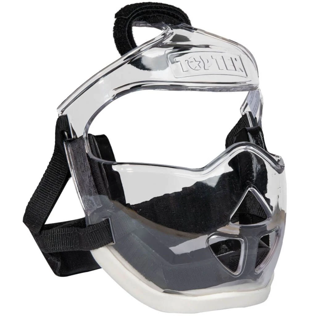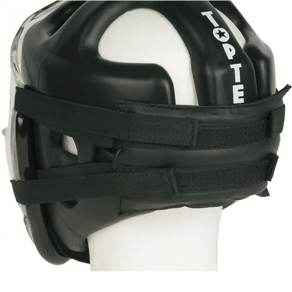The Top Ten head guard Face Maskย significantly increases safety around the eyes, nose and mouth area as well as protecting the chin against uppercut and knee impacts