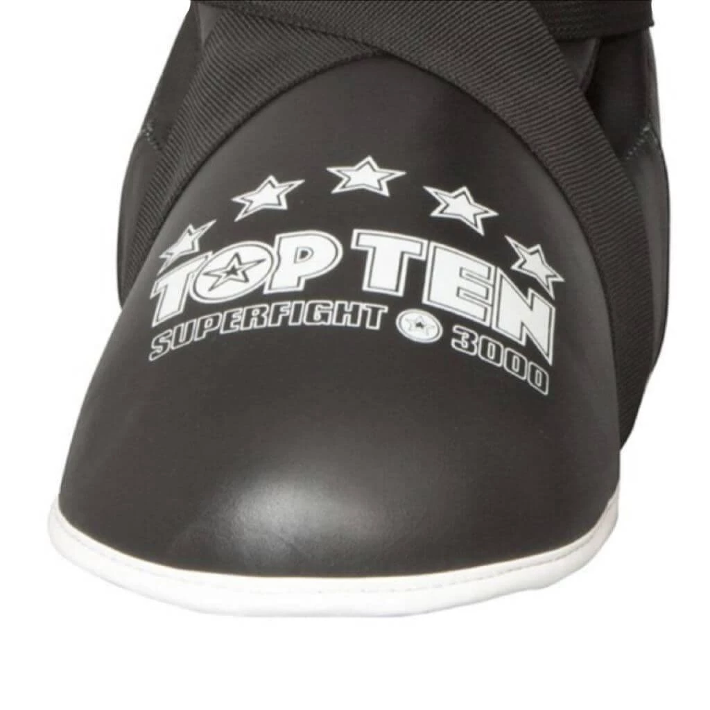 The Top Ten Superfight 3000 range have a leather finish. The inner padding is made of the super shock absorbent Bayfillยฎ PPS foam to give you the ultimateย protection against instep and ankle injuries.