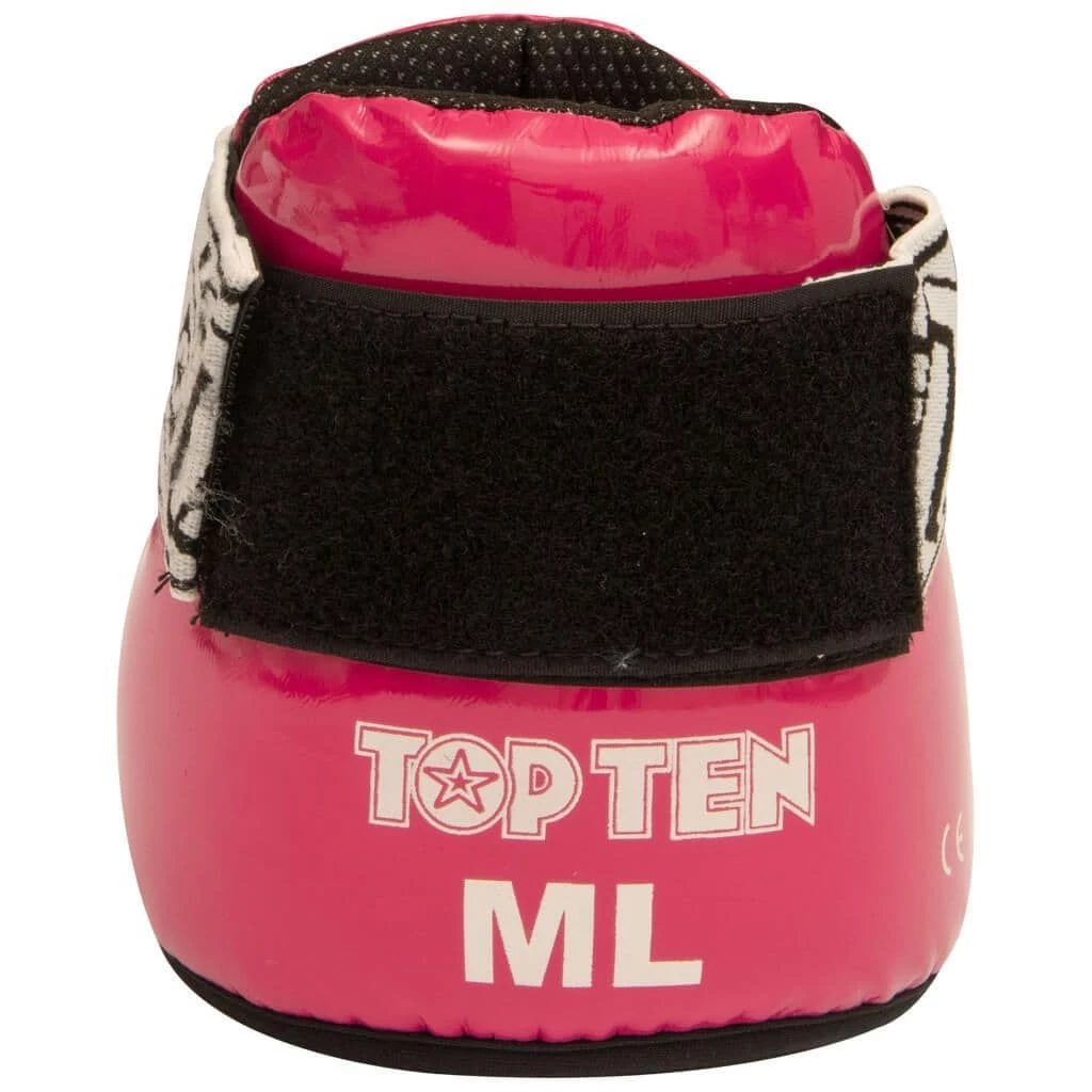 Especially in theย martial arts disciplines with a lot of footwork and kicking techniques, like in Taekwon-Do or Kickboxing, you shouldย put a lot of emphasis on the protection of your feet. The most heavily loaded part of the musculoskeletal system isย the foot, especially on the top of the metatarsus.ย Top Ten’s โSuperLightโ foot protectors are designed specifically for this area andย combine with the latest medical and sports technologiesย to bring moreย safety to martial arts. Theย sturdy synthetic leather caseย is filled with an alreadyย pre-formed PPS foamย and offers the athleteย excellent damping properties with high energy absorption. For aย long shelf life, Top Ten’s bottom edge is reinforced with a black contrast strip.