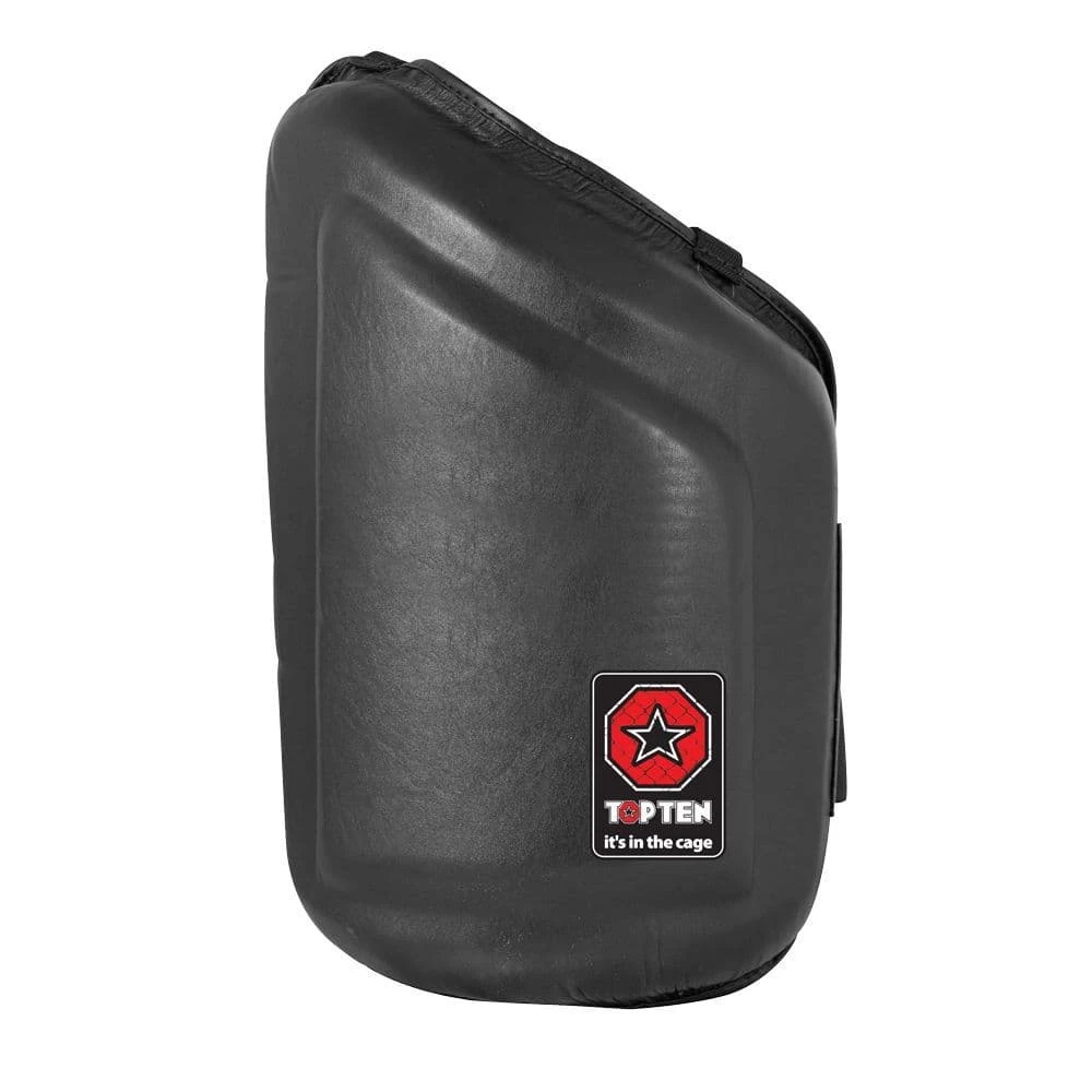 The TOP TEN thigh guard is a new addition to the line. It was developed by and for trainers who wanted to wear thigh protection separately from the belly guard. Therefore, these thigh guard can be worn with or without a belly guard. It is very popular because it not only absorbs the impact of low kicks optimally, but is also very comfortable. It can be attached by a belt around the waist and with wide Velcro closure at the legs.
