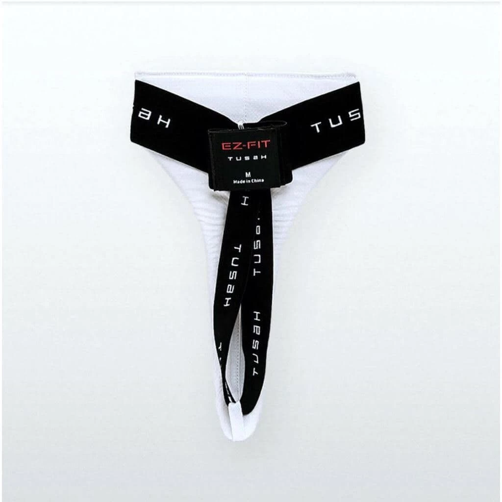 This female groin guard comes in the colour white and has an elasticated waistband with a PU cover.